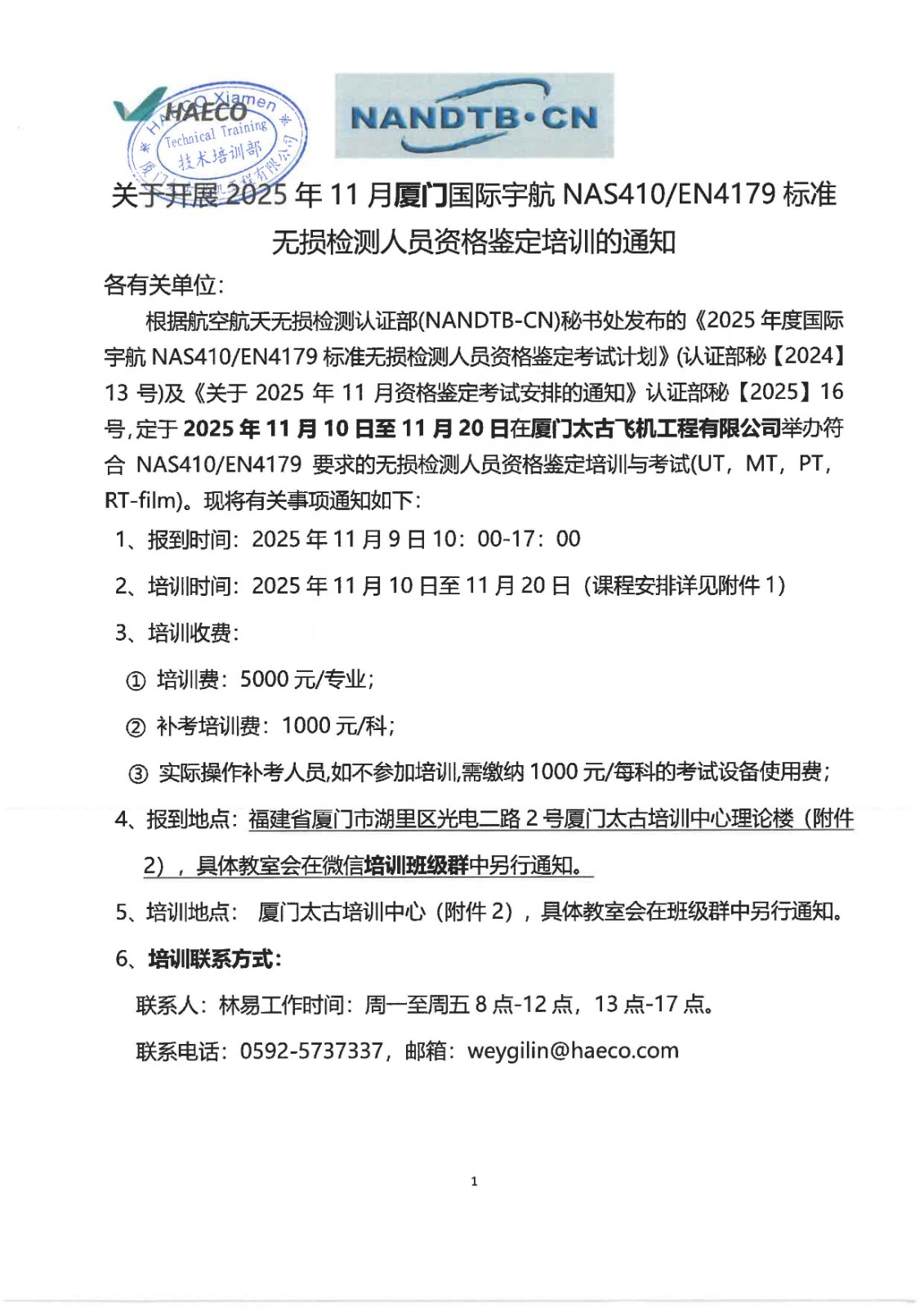 2025年11月厦门NAS410EN4179培训通知